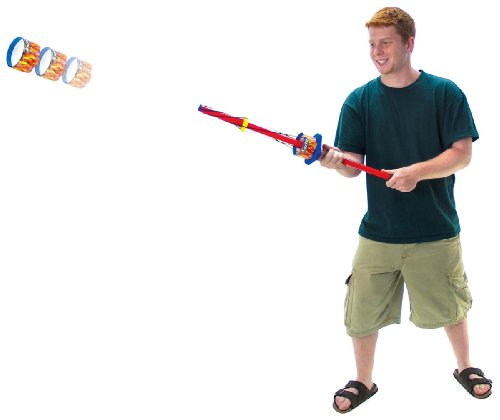 Studio : Educational Innovations Publisher : Educational Innovations Product Description This flying ring launcher dramatically illustrates the effect of gyroscopic forces on motion. If the Mini X-Zylo flying ring is launched with the rubber bands pulled back straight, it wiggles through the air chaotically. But by twisting the rubber bands and giving the Mini X-Zylo a spin, gyroscopic forces send the ring flying in a straight line! Launcher includes two Mini-X-Zylo flying rings. Additional Mini X-Zylo flying rings available separately. 0
