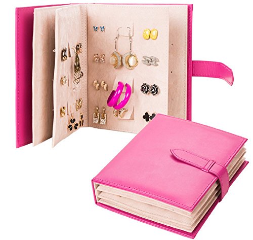 Jewelry Travel Organizer-Litte Book Design PU Leather Jewelry Earing Storage,Pink