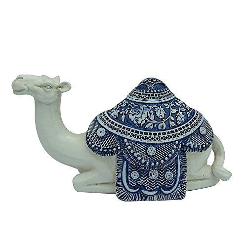 Turtle King 1-Humpback Laying Down Camel Figurine, White with Blue Blanket