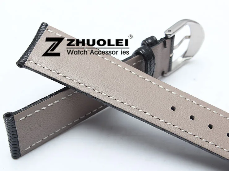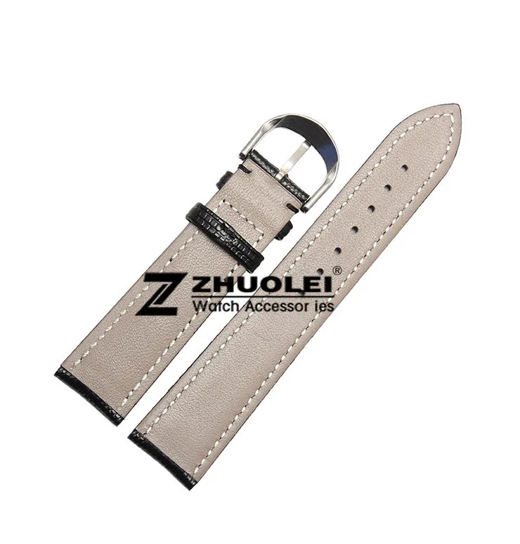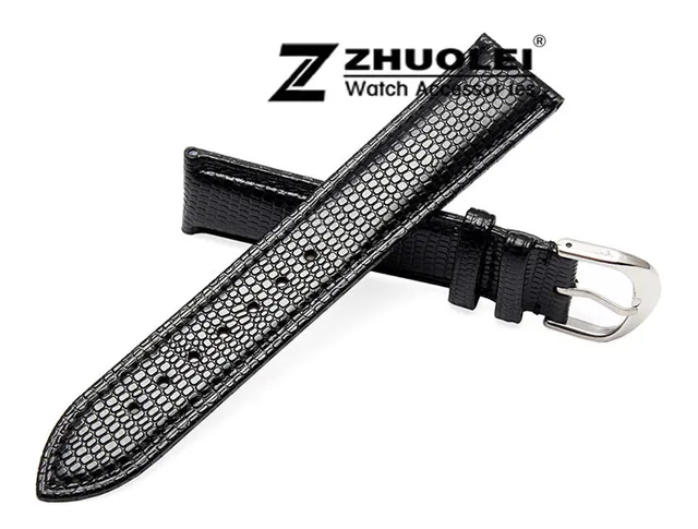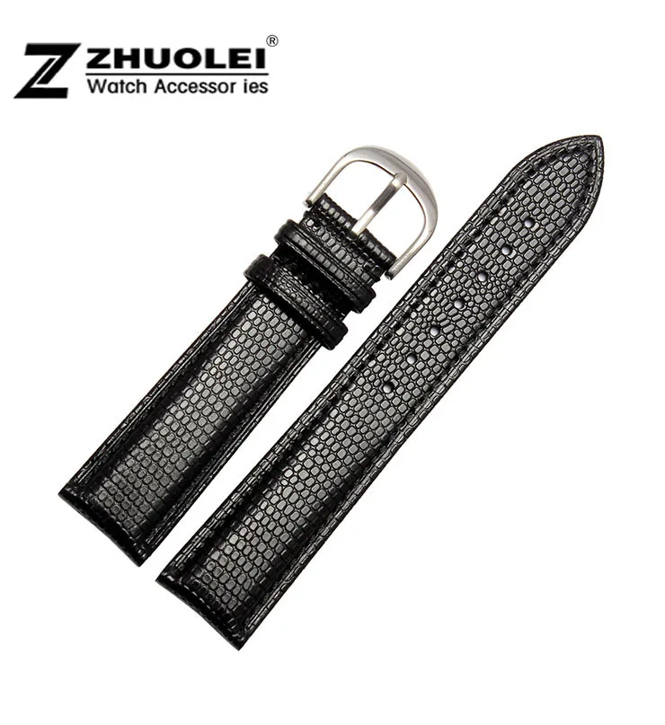 | [해외] 18mm 20mm 22mm 새로운 고품질의 블랙 정품 가죽 watchbands 도마뱀 패턴 실버 핀 시계 버클 스트랩 |
