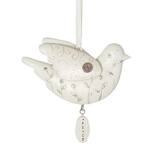Peace White Dove Ivory with Glitter Accents 3.5 x 2.5 Resin Ornament Set of 6