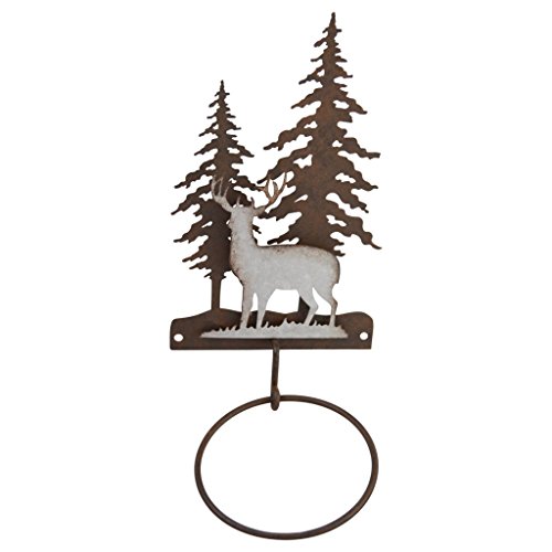 Pine Ridge 3-D Deer Scene Metal Single Hand Towel Holder - Western Decorative Wall Mount Holder For Kitchen, Washroom, Toilet and Bathroom