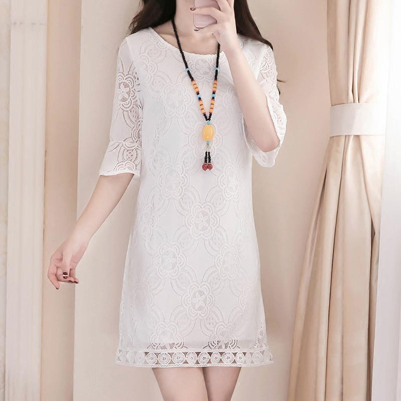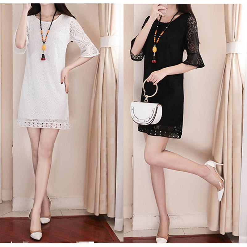 ラウンドネックで総レースのシンプルで優雅なミニ丈ワンピースです♪