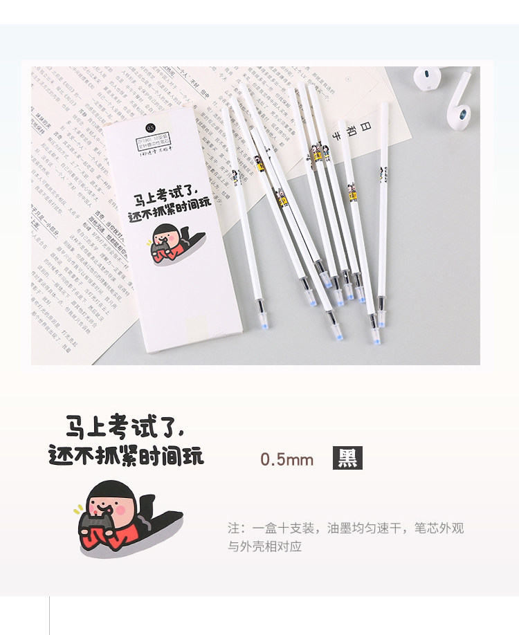 创意可爱全针管中性笔芯学生用替芯黑色0.5mm水笔芯10支盒装