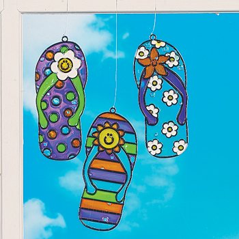Studio : Oriental Trading Company Publisher : Oriental Trading Company Binding : Office Product Product Description Flip Flop Sun Catchers. Beach bums and surfer girls alike will love these sun-catching Hawaiian ornaments! Decorate these 4 flip flop sun catchers at your next luau party for a truly tropical craft activity! Includes starfish flowers and other sandal styles to paint any way you want. Plastic. Hangers not included. We recommend using sun catcher paint or sun catcher paint pens sold separately online. OTCAge RecommendationAges 8 Up Containing many pieces of all shapes and sizes and made from a variety of different sturdy materials some of which include sharp edges or points including glass beads ceramics or metals. Activity may require weaving beadwork knotting or special glue. 0