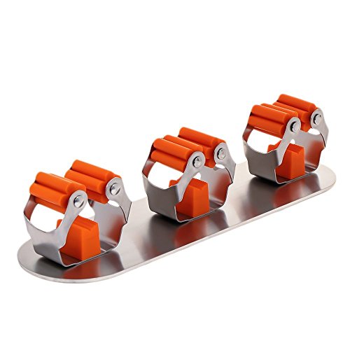 Durable Material: Made of brushed stainless steel, will not rust easily and the 3M adhesive on the back can guarantee that the mop holder will stick to the surface well.