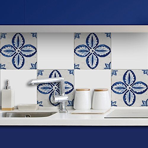 Home Decor Line Floral Peel and Stick Tiles - Set of 8