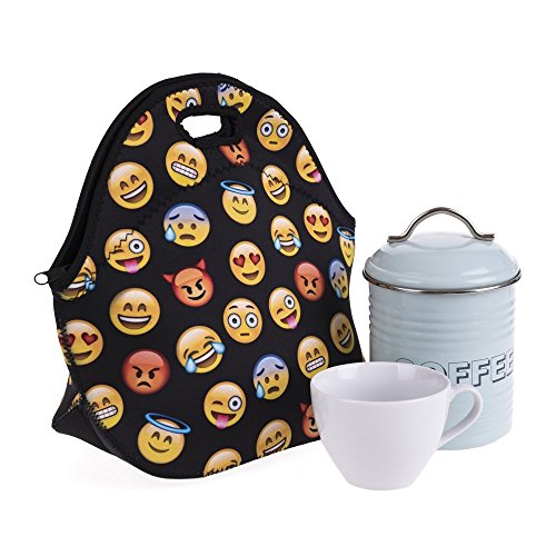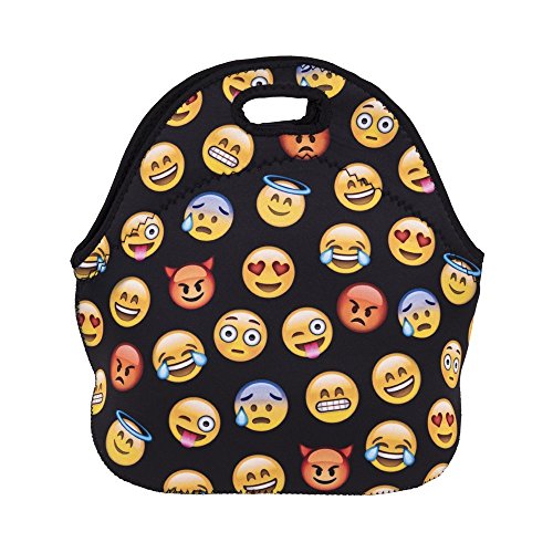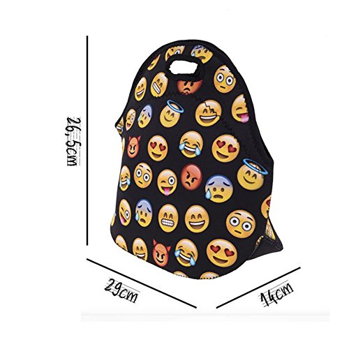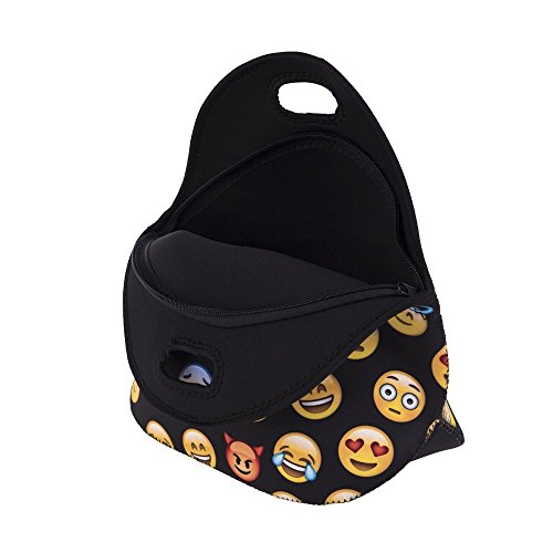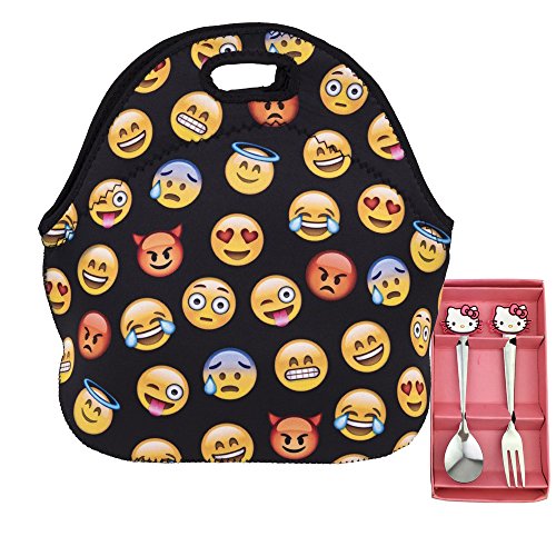KooJoee Neoprene Insulated Lunch Bag Cute Emoji Pattern Reusable Lunch Box Lunch Tote Container Organizer With Free Stainless Steel Set of 2-Piece(Fork,Spoon)for Women,Kids, Girls, Boys,Teens (Pink)