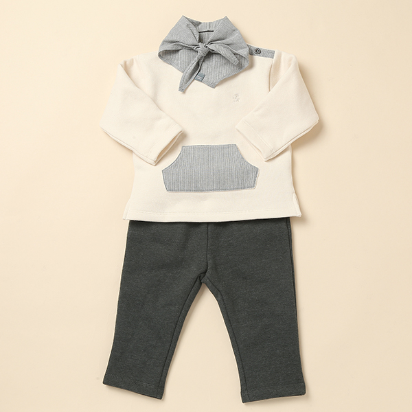 - 신축성이 좋고 도톰한 소재의 상하복으로, 외출시 편하게 입히실 수 있는 디자인입니다.