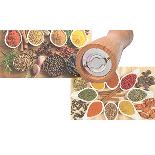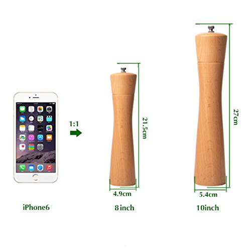 Fastnova Adjustable Ceramic Rotor Salt and Pepper Grinder, Manual Beech Flat Wood Pepper Mill and Salt Mill, Burlywood, 8 inch Set of 2