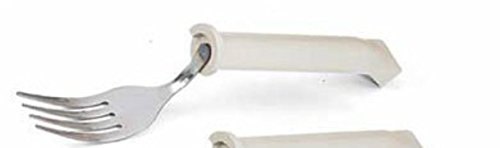 - Eating assistance fork with special swivel design keeps food on the stainless steel utensil when turned at any angle