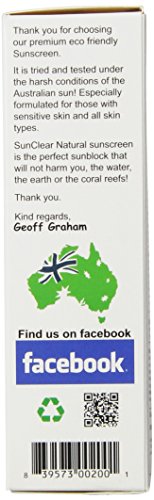 ReleaseDate : 2015-06-22 Studio : Sunclear Natural Publisher : Sunclear Natural Binding : Health and Beauty Product Description Sun Clear is a natural sun care protection using the patented Micro fine Zinc Lear technology. Formulated for all skin types, children and especially for those with sensitive skin. 0