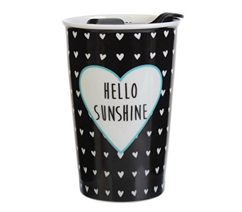 Formation Brands Hello Sunshine Ceramic Double Wall Travel Mug with Lid (Set of 4), 9 oz, Multicolor