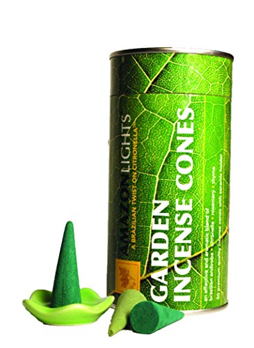 Studio : Amazon Lights Publisher : Amazon Lights Binding : Kitchen Product Description Spend time outdoors bug-free the natural way with Amazon Lights Incense Cones. Using a highly concentrated mixture of citronella, Andiroba, rosemary, and thyme, Amazon Lights Incense Cones protect your patio and garden from pesky bugs, gnats, and mosquitoes, with a fresh, environmentally-safe scent. Each Garden Cone has up to 25 minutes of bug-free, enjoyable burn time and contains 10% essential oils for an aromatic scent. Amazon Lights products are all part of a Fair Trade Community in the Brazillan Amazon, which has used the main ingredient Andiroba in their daily lives since the beginning of time. Andiroba works as an amazing natural bug repellent because it causes insects to lose their appetite, and in return, they do not bite. Because Andiroba is not an insecticide, insects do not die and the food chain is not harmed or disrupted. This set comes with 50 Incense cones, each with a burn-time of 25 minutes, making them the perfect option for short outdoor moments, such as an afternoon brunch or planting. This set also comes with an attractive easy-to-clean ceramic burner plate to keep the incense ashes off your table. 0