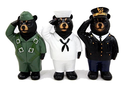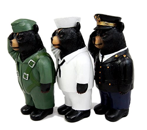 -. Binding : Kitchen -. Brand : AtlanticcollectibleS -. Color : Multicolored -. EAN : 0648609572667 -. Feature : These Saluting Bear Figurines are approximately 5 1/8" tall, 3 1/8" long and 2.25" deep each. / They are made of polyresin, hand painted and polished individually. Color Tone may vary from pictures. / Stand your ground and salute the USA flag along with these military servicemen bears! Among the many uniformed groups that they stand with, we have highlighted the remarkable members of the US Airforce pilot, Navy sailor and the distinctive Admiral of the US aircraft crew. / This is an Atlantic Collectibles exclusive collection. -. IsAutographed : 0 -. Label : Atlantic Collectibles -. Manufacturer : Atlantic Collectibles -. ProductGroup : Home -. ProductTypeName : HOME -. Publisher : Atlantic Collectibles -. Studio : Atlantic Collectibles -. Title : Atlantic Collectibles USA Sailor Pilot & Admiral Saluting Bear Figurine Set 5"H Uniformed Military Aircraft Carrier Service Bears Collectible Sculptures -. UPC : 648609572667