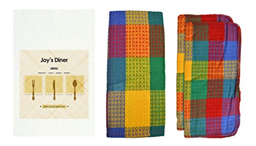 R&R Textile Mills 8 Piece Personalized Restaurant Menu Dish Towel Set, Rainbow
