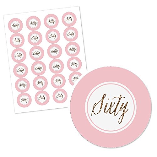 Chic 60th Birthday - Pink and Gold Birthday Cupcake Wrapper & Pick Party Kit - Set of 24