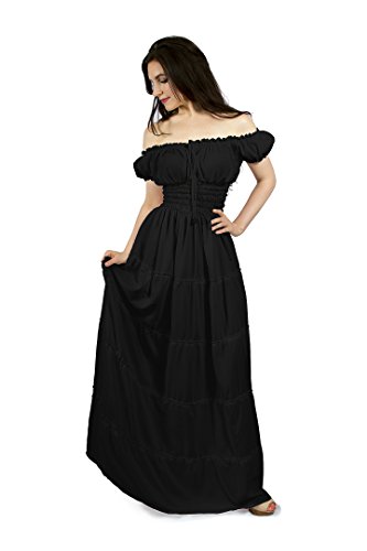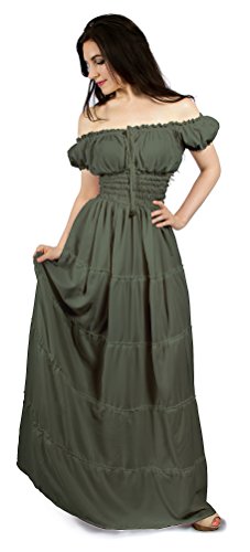 Renaissance Peasant Faire Gown Boho Hippie Sun Dress (L/XL, Cream)
