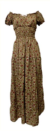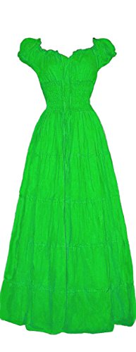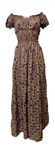 Versatile peasant dress is light and airy. Great for hot Summer days whether you are at the beach, at a Ren Faire or lounging around the house. What defines the dress is comfort and style. The elasticized neckline allows for it to be worn on or off the shoulder, while the waist is smocked giving you a snug yet flexible and comfortable fit. s/m Bust: to 40" Waist: to 36" Length: 52"; l/xl Bust: to 44" Waist: to 40" Length: 52"; 2/3x Bust: to 48" Waist: to 44" Length: 52";