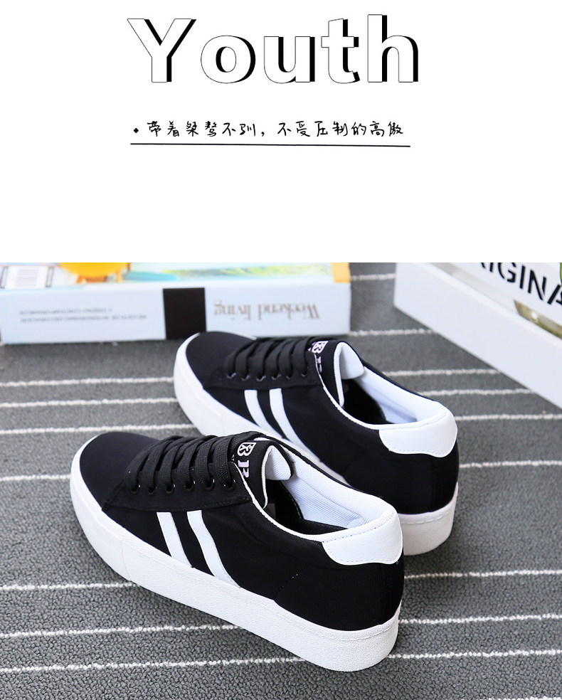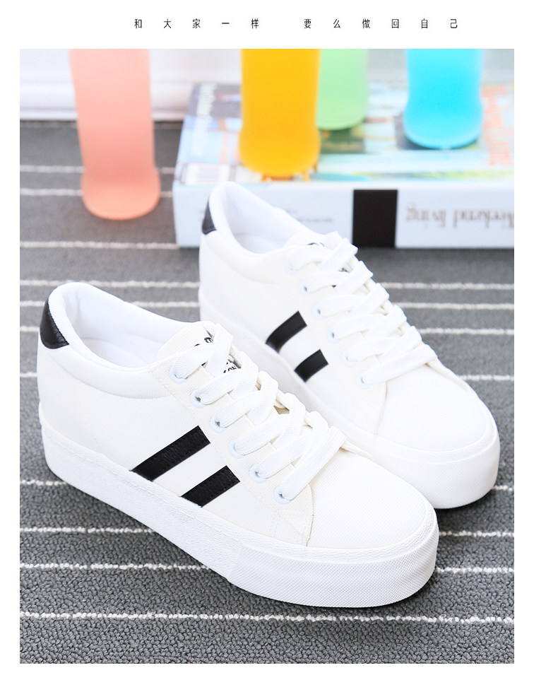 帆布鞋女春季学生板鞋韩版休闲运动鞋厚底内增高小白鞋潮单鞋