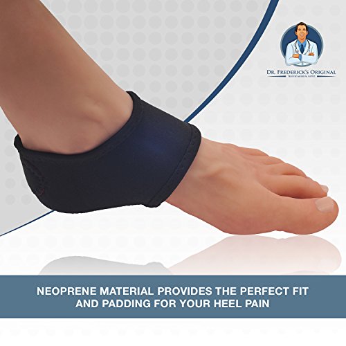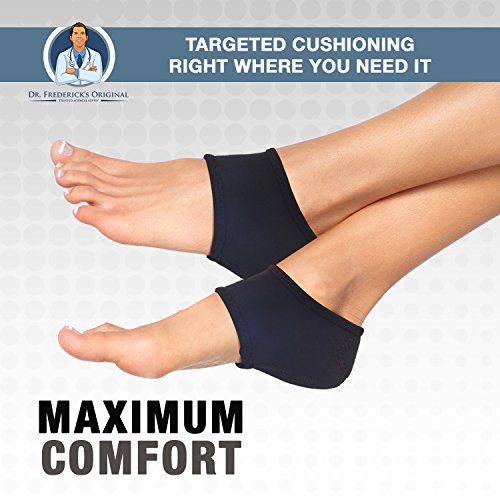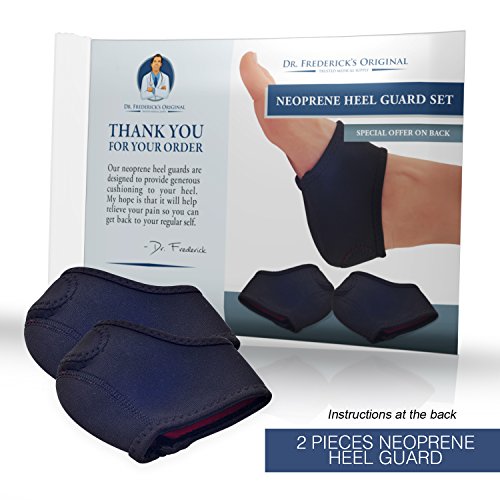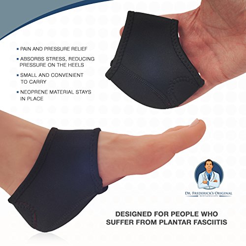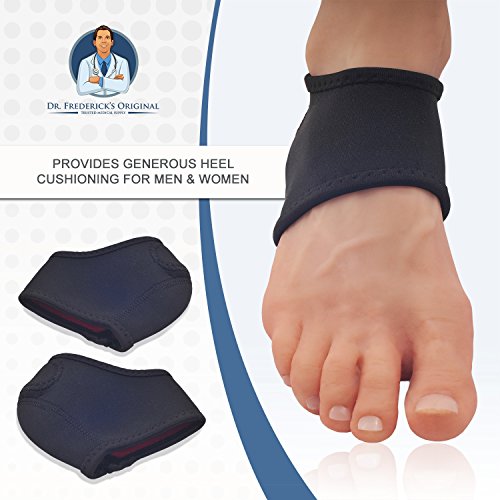 - Plantar Fasciitis - Heel pain - Heel spurs - Cracked heels - Dry feet - Foot pain - Trouble walking without pain FLEXIBLE, AMORTIGUADO, DURABLE - Mientras que otros protectores del talon se extienden demasiado rapidamente, tienen muy poca flexibilidad, o no proporcionan el amortiguador, los protectores originales del talon ortopedicos del Dr. Frederick son la cosa verdadera, desemejante de otros knockoffs o impostores. Le damos un envoltorio de neopreno que proporciona mas estructura que nuestros competidores, por lo que obtener apoyo y alivio del pie y el dolor de talon que viene con los talones agrietados y fascitis plantar. 0