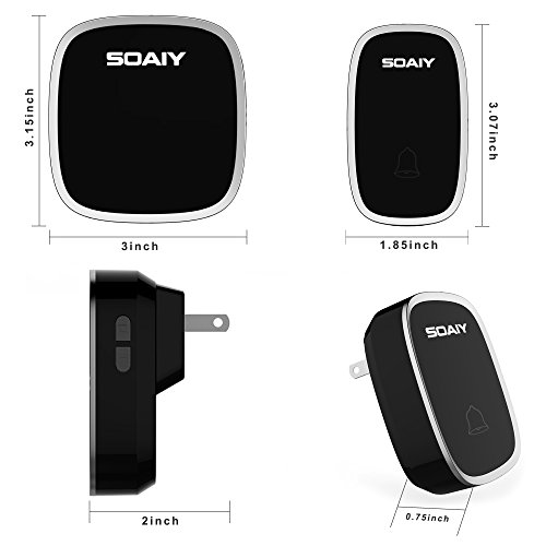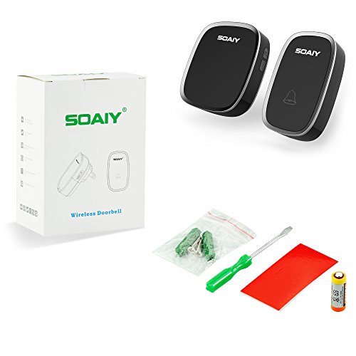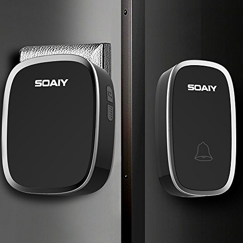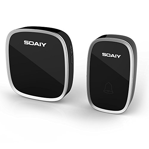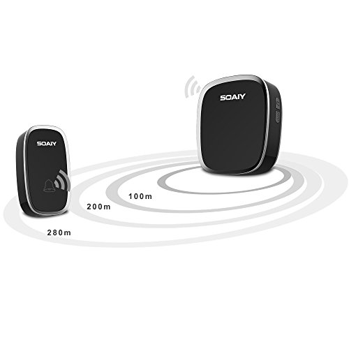SOAIY Long Range Water-resist Wireless Doorbell Kit, 1 Plug In Receiver 1 Remote Push Button, Emergency System for The Aged, 1000 Feet Operating Range,36 Optional Stereophonic Music Chimes