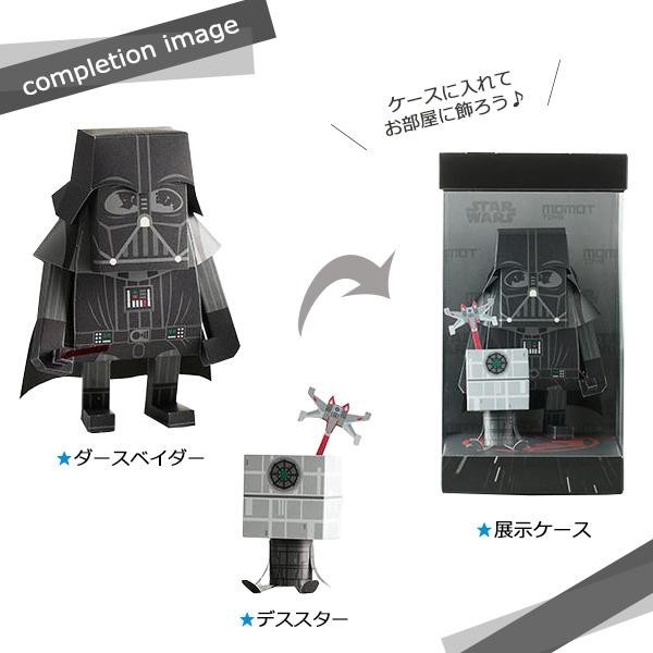 映画「スターウォーズ」のダースベイダーのペーパートイです。台紙より各パーツを抜きとり、工作用のりを使い組み立てる商品で、親子でも楽しめます。 |