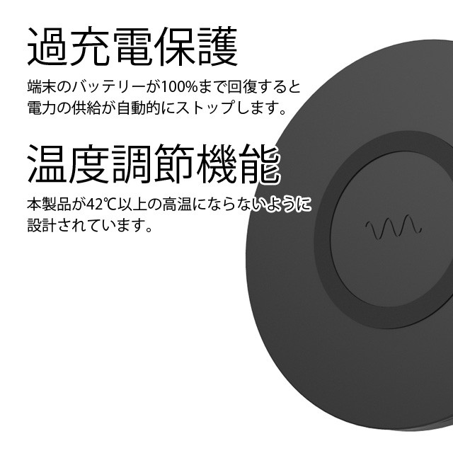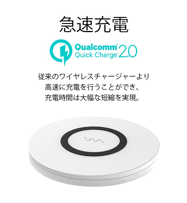 | 【ケースを装着したまま充電可能】 5-8mmまでの厚みのケースであれば充電が可能です。 ※金属や磁気を帯びたものが間に挟まっていると充電できない場合がございます。 【急速充電】 Quick Charge 2.0 対応 従来のワイヤレスチャージャーより高速に充電を行うことができ、 充電時間は大幅な短縮を実現。 【充電時間短縮】 充電効率は75% 以上に達して、 充電時間は短縮になれることを実現できます。 【2種の安全保護】 過充電保護:端末のバッテリー残量が100%まで回復すると電力供給が自動的にストップします。 温度調節機能:42℃以上の高温にならないように設計されています。 【コンパクト】 本製品は軽量かつコンパクトで、 持運びやすいチャージボード仕様となっております。 | |