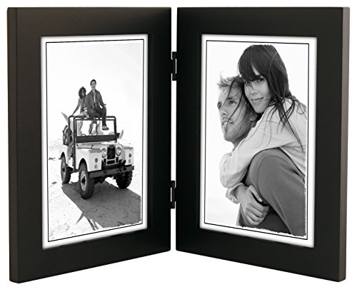 Malden International Designs Linear Classic Wood Picture Frame, Double Vertical, 2-5x7, Black