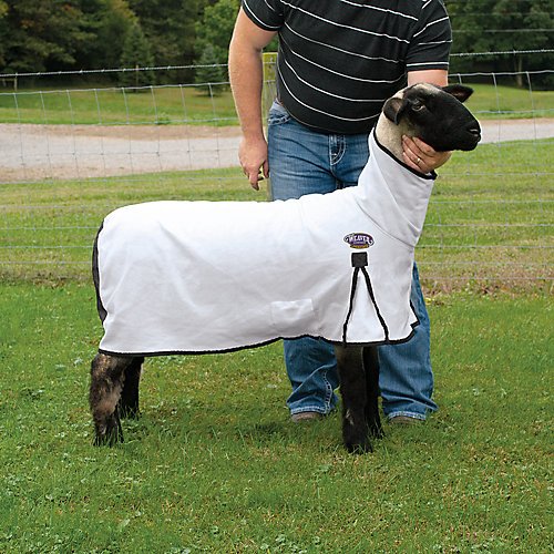 Studio : Weaver Leather Publisher : Weaver Leather Binding : Sports Product Description An industry first, this unique blanket with breathable white mesh material provides excellent ventilation and blocks 98% of UVA/UVB rays, making it great for slick shorn lambs. The durable, rip-resistant material offers effective protection from fly bites and provides a barrier against fungus while keeping the animal clean and cool. Edged with black binding for added strength, these blankets also feature snap and ring ends on the adjustable belly strap that rest inside pockets to help protect the lamb from rubbing or chafing. A mesh butt provides added air circulation while leg gussets allow for extended leg movement. Machine wash separately in cold water, gentle cycle; line dry only; do not bleach. Large fits lambs 130-170 lbs. 0