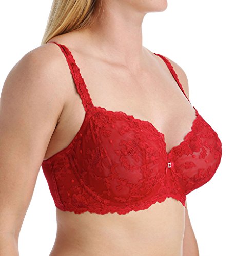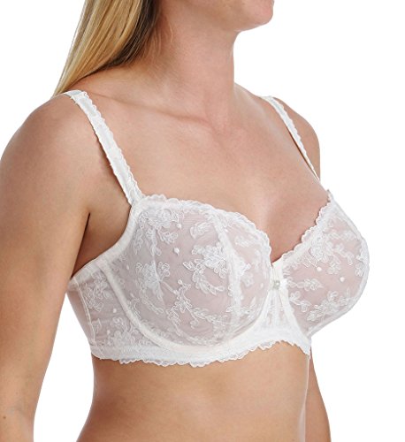 Sheer non-stretch mesh underwire demi bra with floral embroidery