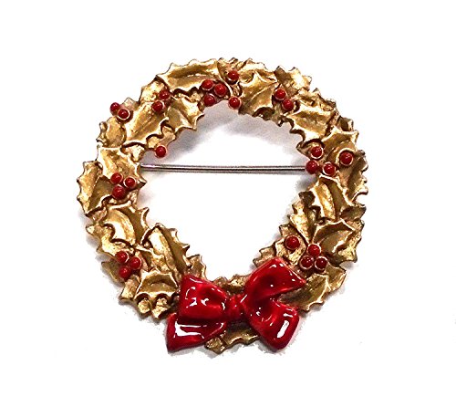 -. Binding : Jewelry -. Brand : Michael Michaud -. Color : gold, red -. Department : womens -. EAN : 0643824217119 -. Feature : Metal is Hand Patinaed Bronze painted with enamel / OURS EXCLUSIVELY by Michael Michaud / Pin Measures: 1.75" in diameter / Brand new and comes in a gift box / Made in the USA -. Label : Four Seasons Design Group -. Manufacturer : Four Seasons Design Group -. PackageQuantity : 1 -. ProductGroup : Jewelry -. ProductTypeName : FASHIONOTHER -. Publisher : Four Seasons Design Group -. Studio : Four Seasons Design Group -. Title : Holiday Holly Wreath Pin/brooch By Michael Michaud for Silver Seasons (OURS EXCLUSIVELY) -. UPC : 643824217119