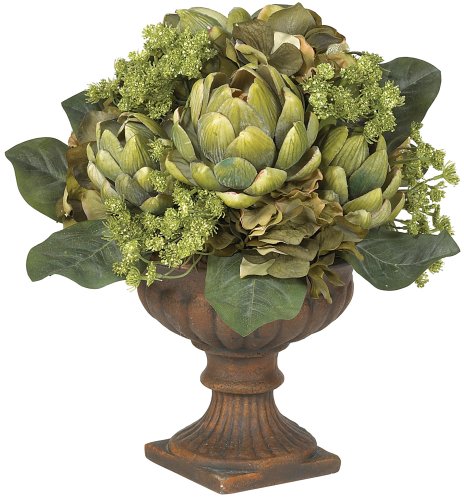 Nearly Natural 4635 Artichoke Centerpiece Silk Flower Arrangement, Green