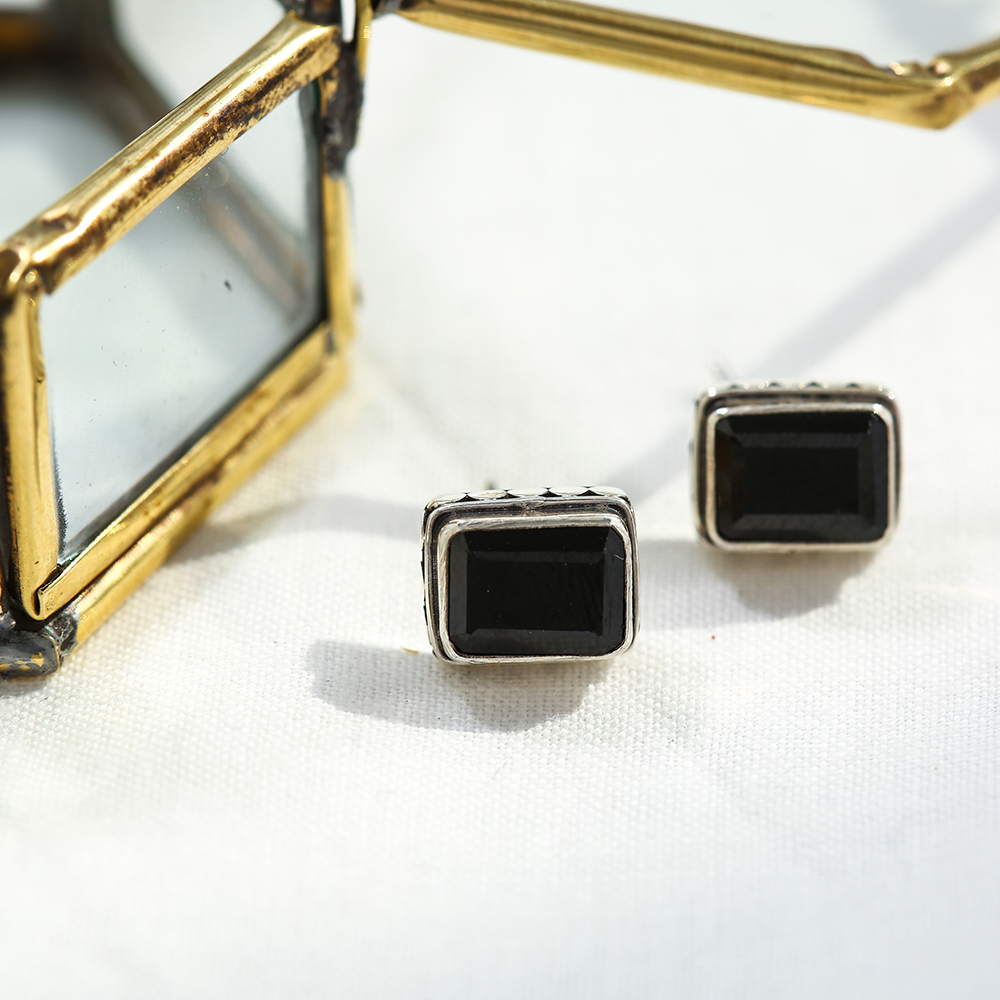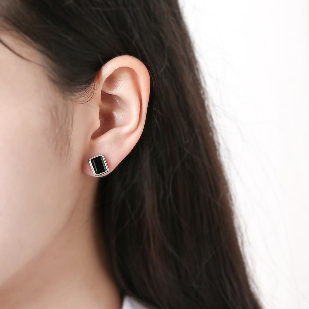 볼드 엔틱 사각 오닉스 귀걸이