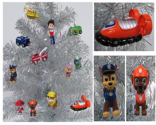 PAW PATROL 12 Piece Christmas Ornament Set Featuring Skye, Marshall, Chase, Rubbie, Zuma, Rocky, Ryder and Vehicles, Ornaments Average 1" to 2.5" Tall, Great for a Mini Christmas Tree