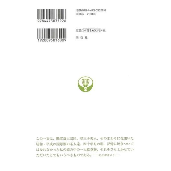 【商品説明】 定価(税込み):1,728円 値引き:10% OFF 第二次世界大戦後の裏千家十五代鵬雲斎大宗匠の海外での茶道布教の歩みは、日本の伝統文化の伝道といえます。40年にわたり裏千家外事秘書、外事部長、国際局長として鵬雲斎大宗匠の海外茶道布教に随行してきた著者が、海外での茶道布教の軌跡をまとめた一冊です。 バーゲンブック 新品 特価 格安 諸芸 茶道 茶道具 文化 国際 日本 海 | |