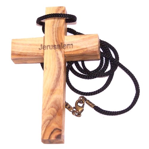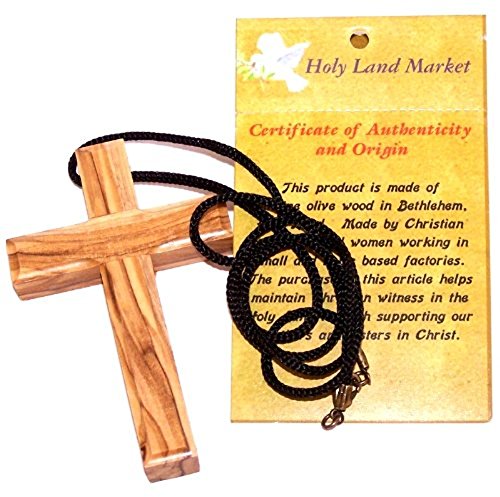 Heavy and unique olive wood Cross. Relatively larger and thicker Cross than your average olive wood necklace. Has nice look and feel about it. Comes with Certificate and Prayer card.