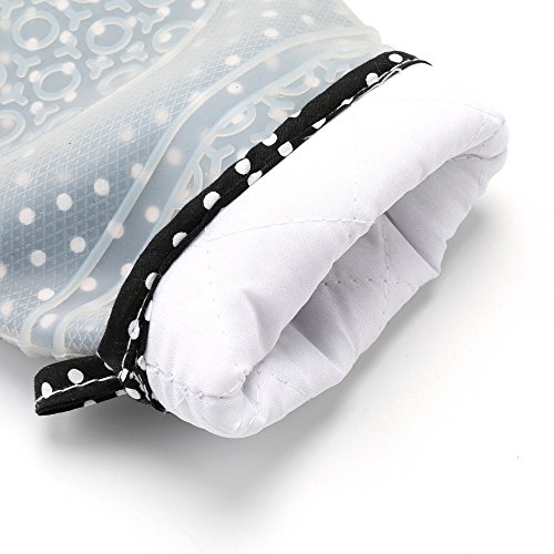 Cotton liner and silicone outer has double function to protect your hands from hot surfaces, liquids and steams.