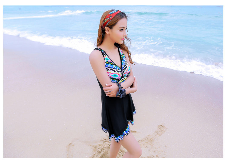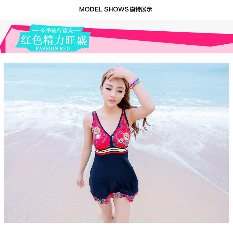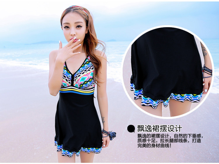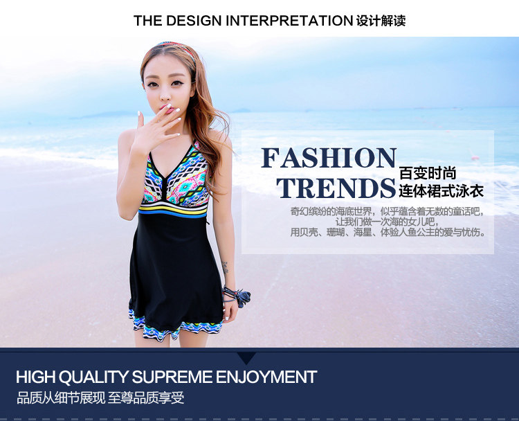 新款 韩国温泉聚拢显瘦遮肚保守连体裙式女士游泳衣小胸泳装