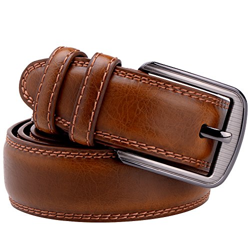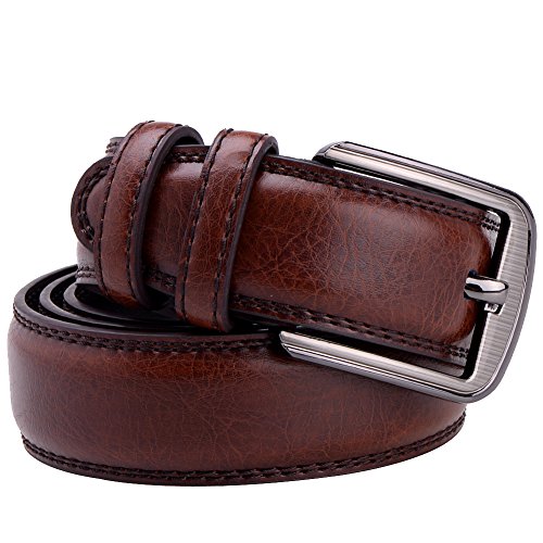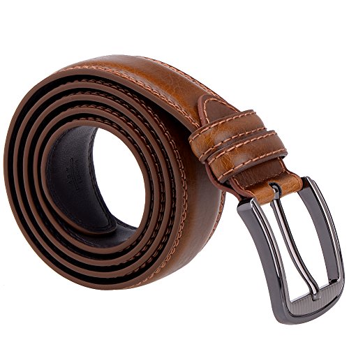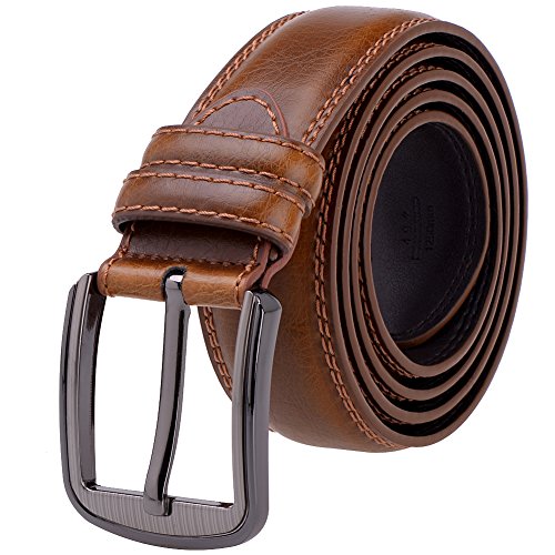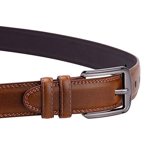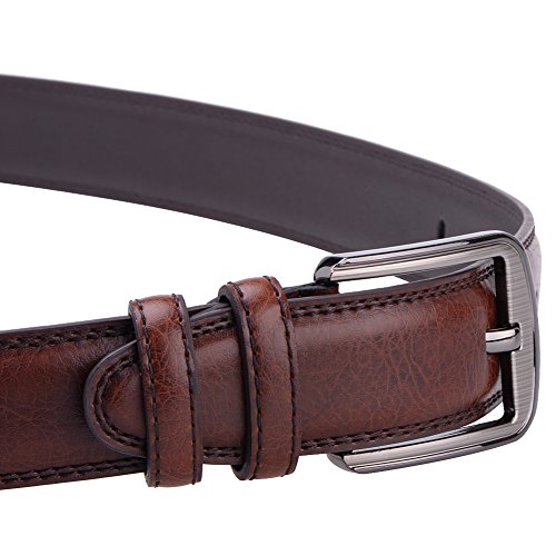 - Feature : Imported / Material: PU Bonded Leather+Alloy / Reversible belt with contrast stitching and polished metal hardware / Single-prong buckle / Belt length:48"/120cm (full length of strap). There are also king-size belt up to 55"/ 140cm. If you need king-size belt, you can leave a message about your size when making orders.
