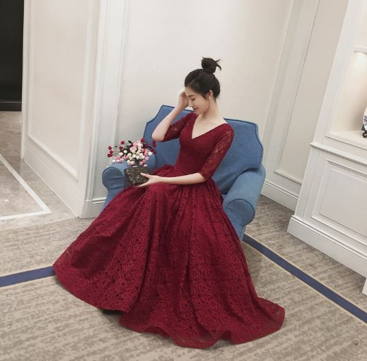ふわっとひろがるスカートが華やかなロングドレスです。