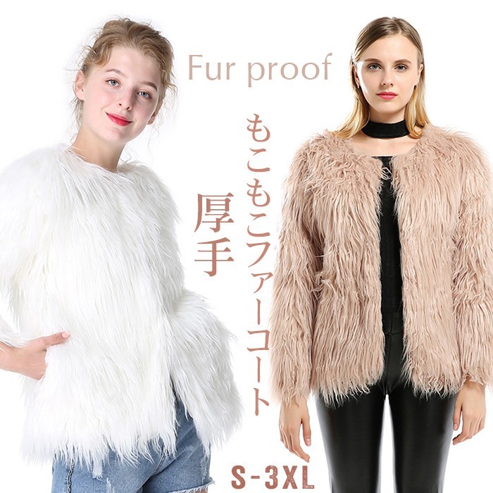 ★ご注意:こちらの商品はお客様がご入金後、メーカーから取り寄せさせて発送する予定です。ご入金からご出荷まで約5-7日ほど時間がかかります。予めご理解いただきました上でご注文下さいますようお願いいたします。フェイクファーボリュームコート ファーコート もこもこコート レディース アウター プードルコート ノーカラーコート 毛皮コート フェイクファー アウター 秋冬 防寒 お洒落 おしゃれ★素材:ポリエステル ★生地の厚さ:普通 ★裏地:あり ★伸縮性:なし ★生産国:中国★カラー:ベージュ 白※お客様ご使用のPC環境により商品画像のカラーが多少異なる場合があります。仕入時期により多少デザインなど異なる場合があります。ご了承ください。★サイズ(CM):S:バスト100 着丈62 肩幅41 袖丈55M:バスト104 着丈64 肩幅42 袖丈56.5L:バスト108 着丈66 肩幅43 袖丈58XL:バスト112 着丈68 肩幅44 袖丈59.5XXL:バスト116 着丈70 肩幅45 袖丈61※サイズは人の手によって測っているため、1-3cmの誤差がある場合がございます。予めご了承下さいませ。