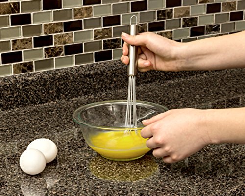 Making food preparation easier and more fun with a stainless steel ball whisk from Kitchow. The balls at the end of this whisk are arranged in a slanted, 45 degree angle. This makes for a great whisking motion without straining your wrists. ?Whether you spend your days covered in flour making delectable pastries at your own cupcake shop or you just love whipping up some deliciously-fluffy pancakes on Saturday mornings with your children, you need a whisk that makes it easier and more efficient to prepare your sweet treats. The Kitchow Hand Mixing Ball Whisk is the ideal kitchen tool for making that and more; and it's far easier to use than the traditional balloon whisk! EFFICIENT DESIGN, BOLD LOOK ?Unlike basket-shaped whisks, our star-design ball whisk features individual strands with a ball on the end that help shed food, sauces and mixes while you're using it to not only improve the quality of the beating, whisking, and mixing, but to reduce the strain on your hand and forearm. Now's the chance to create the same homemade recipes you've always loved, but to do it better, faster and with less effort. ? ?· Standard Size Slanted Ball Whisk (10" long) ?· Durable Stainless Steel ?· Dishwasher Safe ?· Reduces Food Prep Time and Wrist Strain ?Make cooking and preparing delicious meals easier and more fun by clicking "Add to Cart" today! 0 |