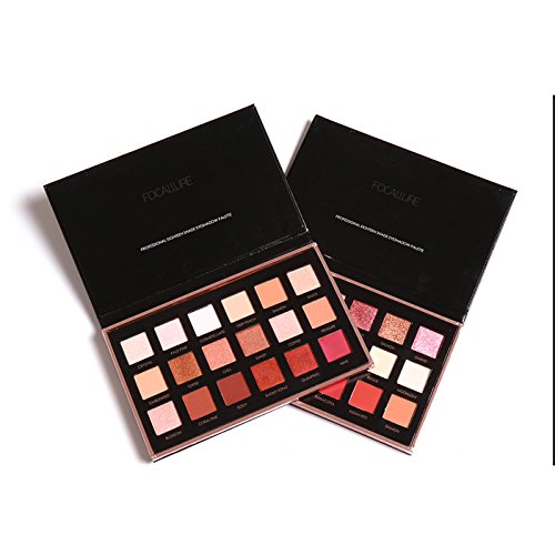 -. Binding : Misc. -. Brand : Inspired Capital L -. Feature : This is a shimmer 18 colors rose golden/ Pumpkin / Twlight eyeshadow which is great for everyday use and party us / This eyeshadow is very pigmented and very easy to apply which keep your perfect eyeshadow makeup for a long time / Quality eyeshadow which is very pigmented and easy to apply, comes with a 2 ends eyeshadow brush / Health and safe ingredients and great quality / Fast Shipping-it usually takes 5-10 business days -. IsAdultProduct : 0 -. Label : Focallure -. Manufacturer : Focallure -. MPN : B779 -. PackageQuantity : 1 -. PartNumber : B779 -. ProductGroup : Beauty -. ProductTypeName : BEAUTY -. Publisher : Focallure -. Studio : Focallure -. Title : 18 Colors Shimmer Rose Gold Pumpkin Twlight Textured Eyeshadow Palette