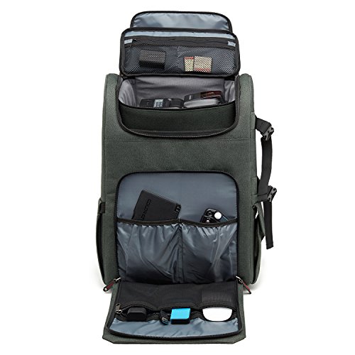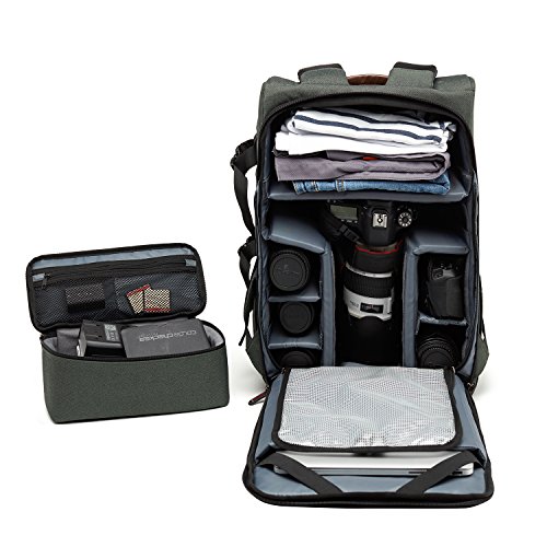 -. Feature : セキュリティー面や機材の落下防止など安全性に配慮した背面開きのバックパック。重要なカメラとレンズをを紛失や盗難から守る。 / 収納スペースが上部・下部にわかれて下部には一眼レフカメラ・交換レンズなどのカメラ機材を収納できて、上部にはPC小物収納ポーチが付きて、バッテリー充電器、ケーブルなどの小物を収納可能。一泊二日程度の撮影旅行にはぴったり。 / 中の仕切りはマジックテープで好きなところに付け替え可能で、レンズの長さやボディの大きさなどの変化にも対応できる。バッグ内部の間仕切りを外すことで、二気室バッグから一気室バッグへ切替えられる。 / 14.7インチまでのノートパソコンやタブレットを収納できる。クッション入りポケットで、衝撃から守る。 / サイドの三脚ベルトと三脚ポケットを使用して、三脚をバッグに取り付けできる。防水カバー付き、突然の雨にも対応できる。使わないときはコンパクトに折り畳める。(※過度な水ぬれは避けて使用してください。)