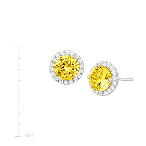 -. Feature : Yellow & White Swarovski Zirconia / Sterling Silver Settings / Measure 3/8 x 3/8 Inches