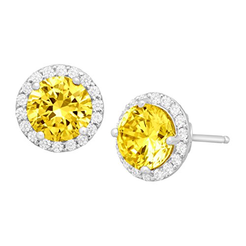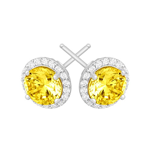 -. Title : Stud Earrings with Yellow & White Swarovski Zirconia in Sterling Silver