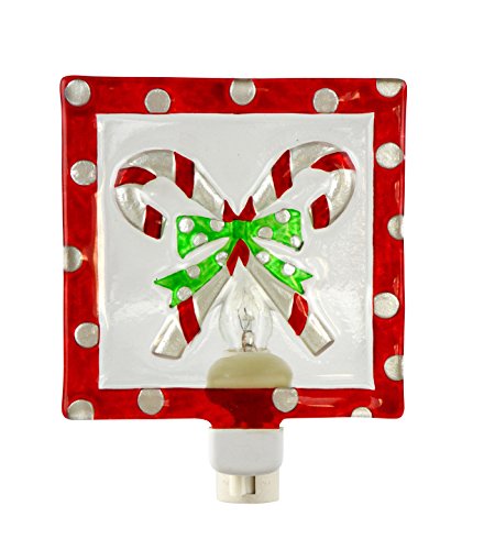 Peppermint Candy Canes 5 x 6 Inch Glass Wall Plug-In Christmas Night Light
