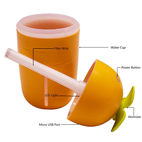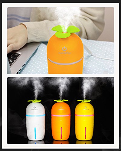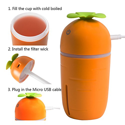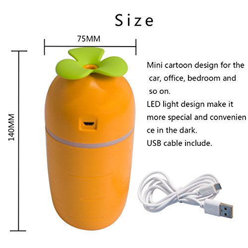 Ayaya Mini Humidifier 200ML Air Purifier Water Aroma Essential Oil Diffuser Cool Mist Humidifier USB Desktop Air Cleaner with LED Light Cute Carrot Orange Design for Home Office Study Yoga Spa