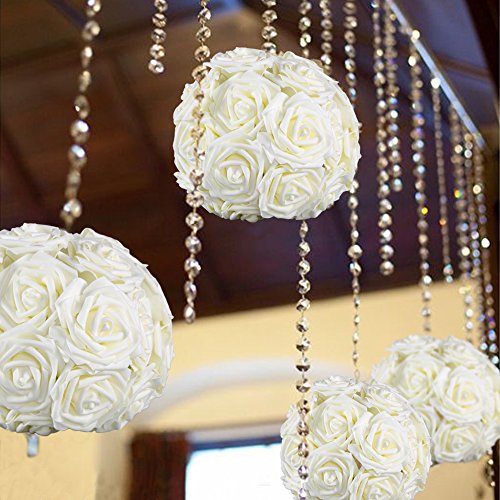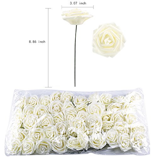 Arrive include 50pcs ivory individual rose heads with stems, each flower stem total tall approx 8.86", and the flower heads diameter approx 3.07"